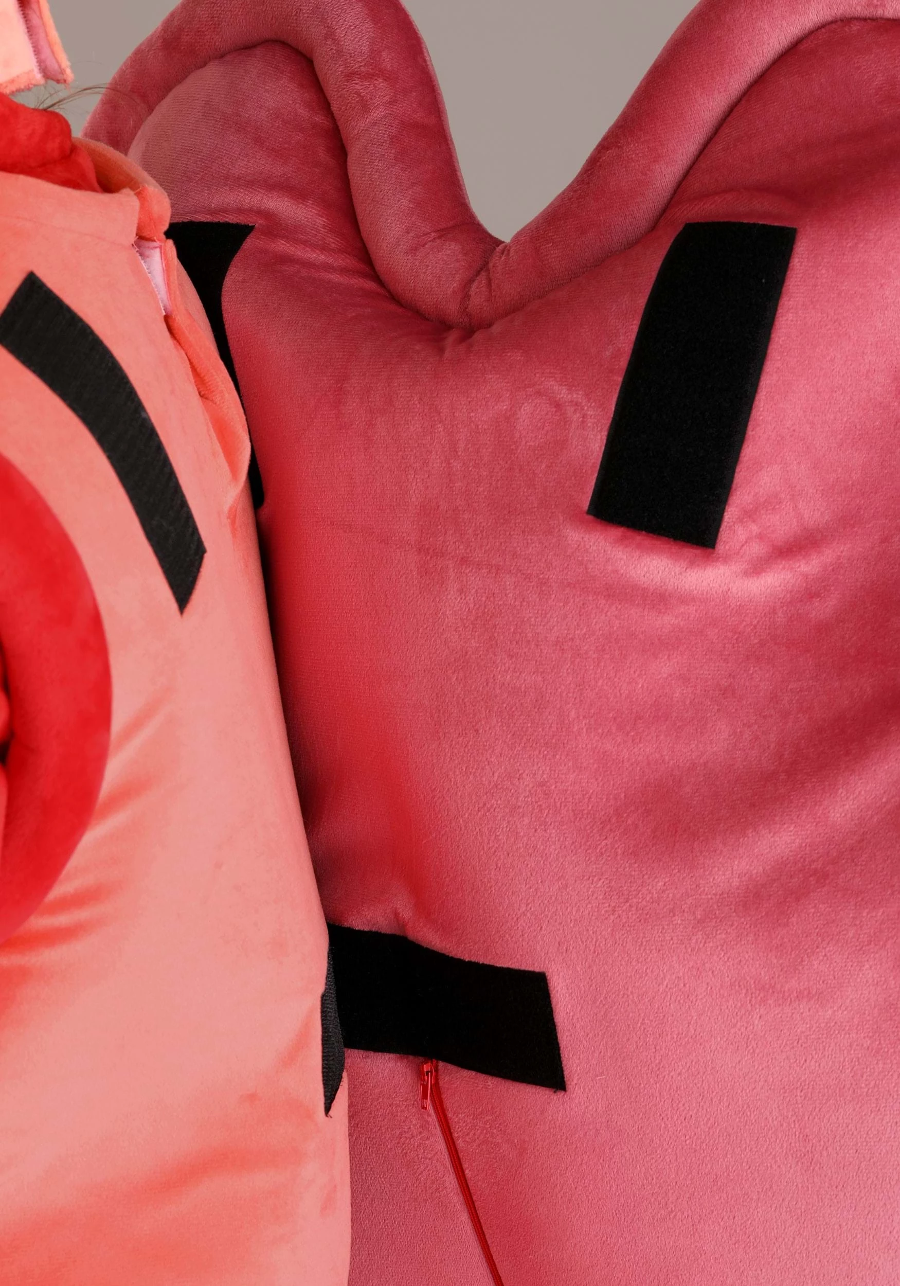 - Foam-backed minky shell secures to the back of the bodysuit w/ hook and loop fasteners