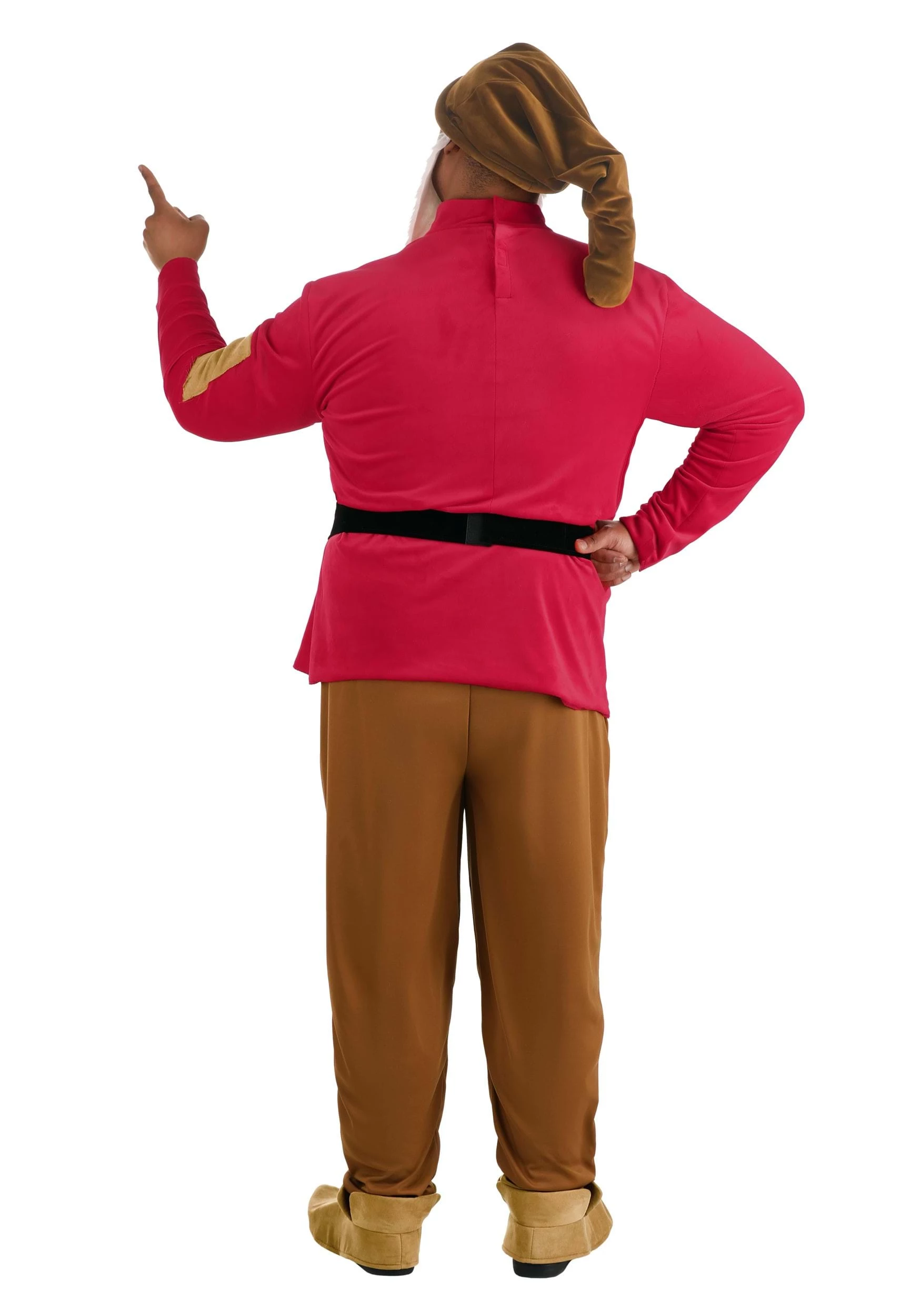 Show your love for Grumpy with this Plus Size Grumpy costume inspired by the character from Disney’s Snow White and the Seven Dwarfs. This Made By Us outfit includes soft brown pants and shoe covers. The red shirt includes yellow buttons and brown elbow patches, and the hat comes with an attached beard, so you won’t have to worry about buying any adhesive. We hope you’ll feel awesome when you wear this authentic costume!