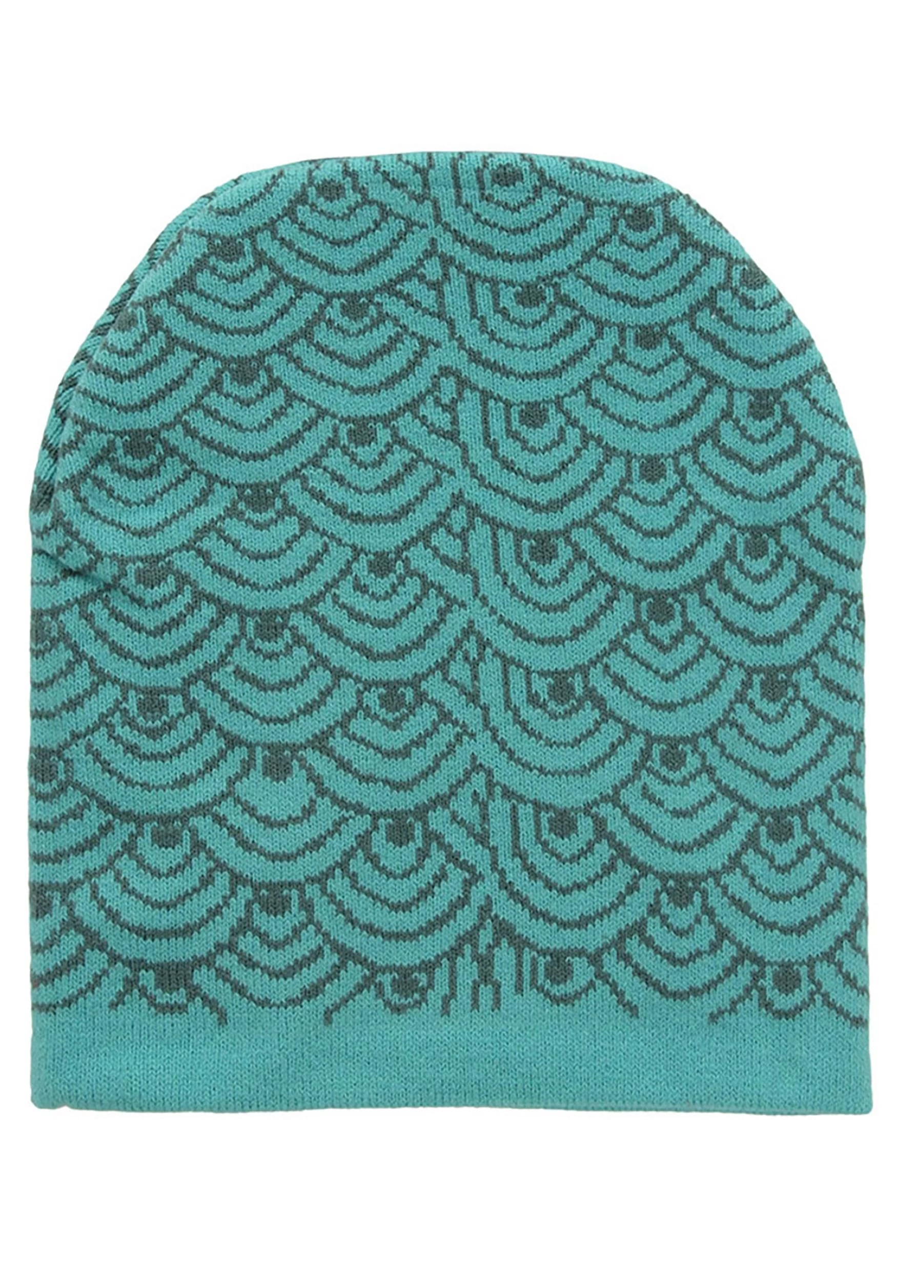 - Knitted-in 3-eyed face on fish-scale background