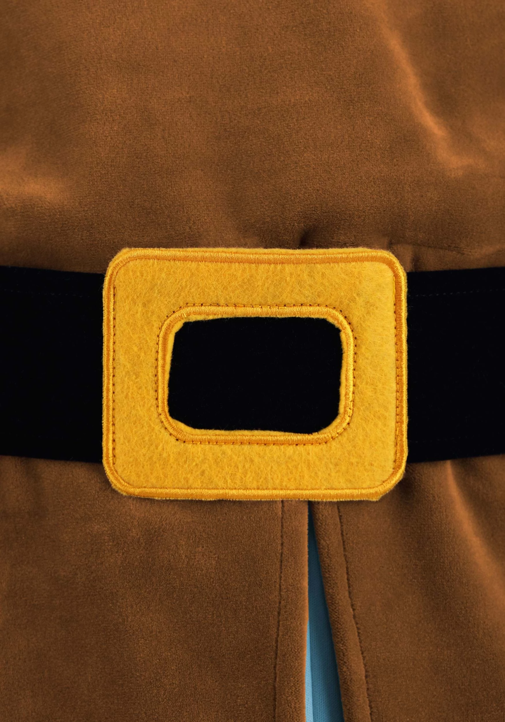 It includes his brown shirt, with sewn-on details like buttons and elbow patches. The hat with an attached beard and bright blue pants and ensure you’ll be recognized as this jolly character, and the belt and shoe covers finish off the outfit. We hope you’ll really feel happy when you put on this cheerful costume!