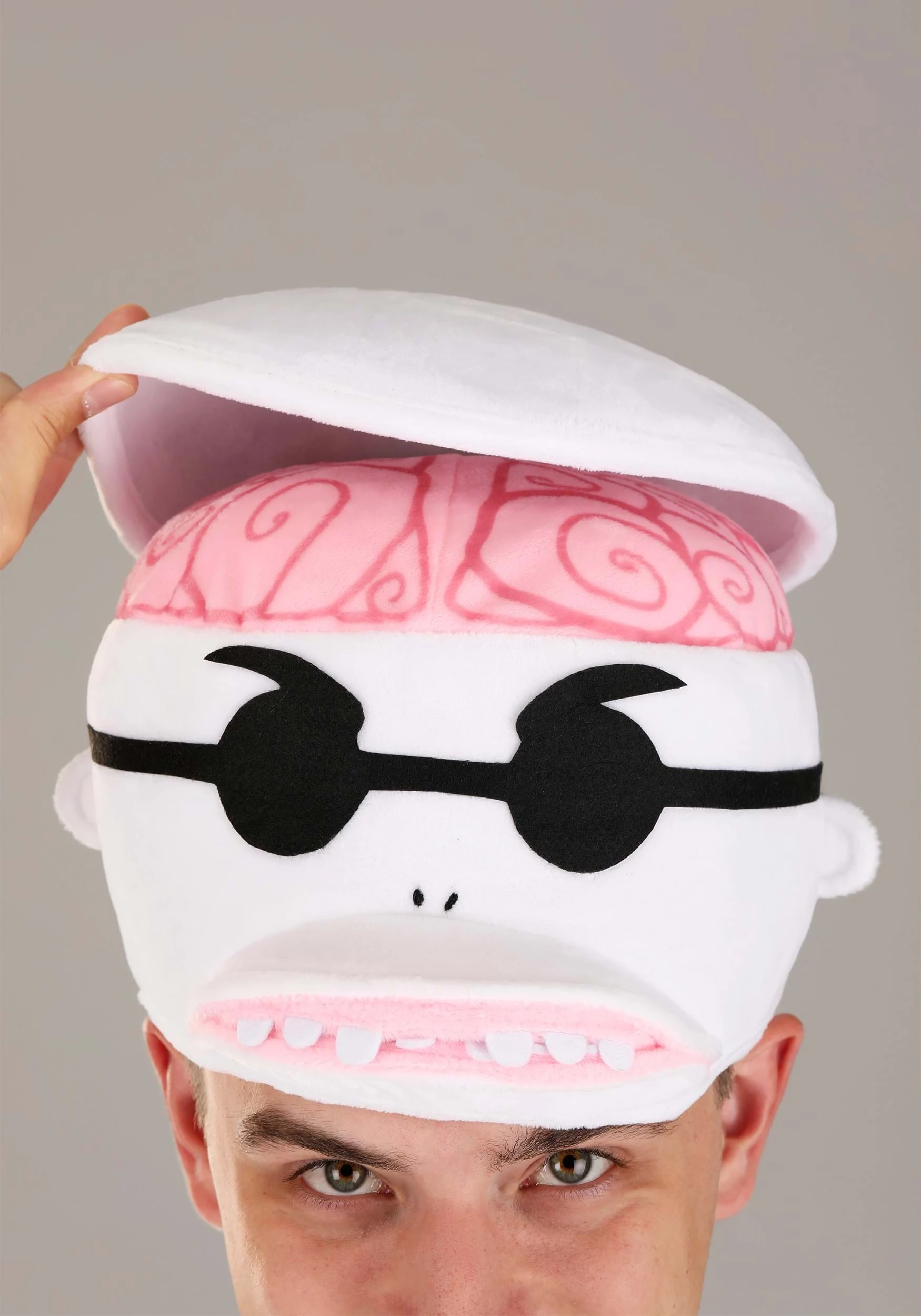 - Top of hat has fiberfill-stuffed “brain” under a stiffened “skull” panel