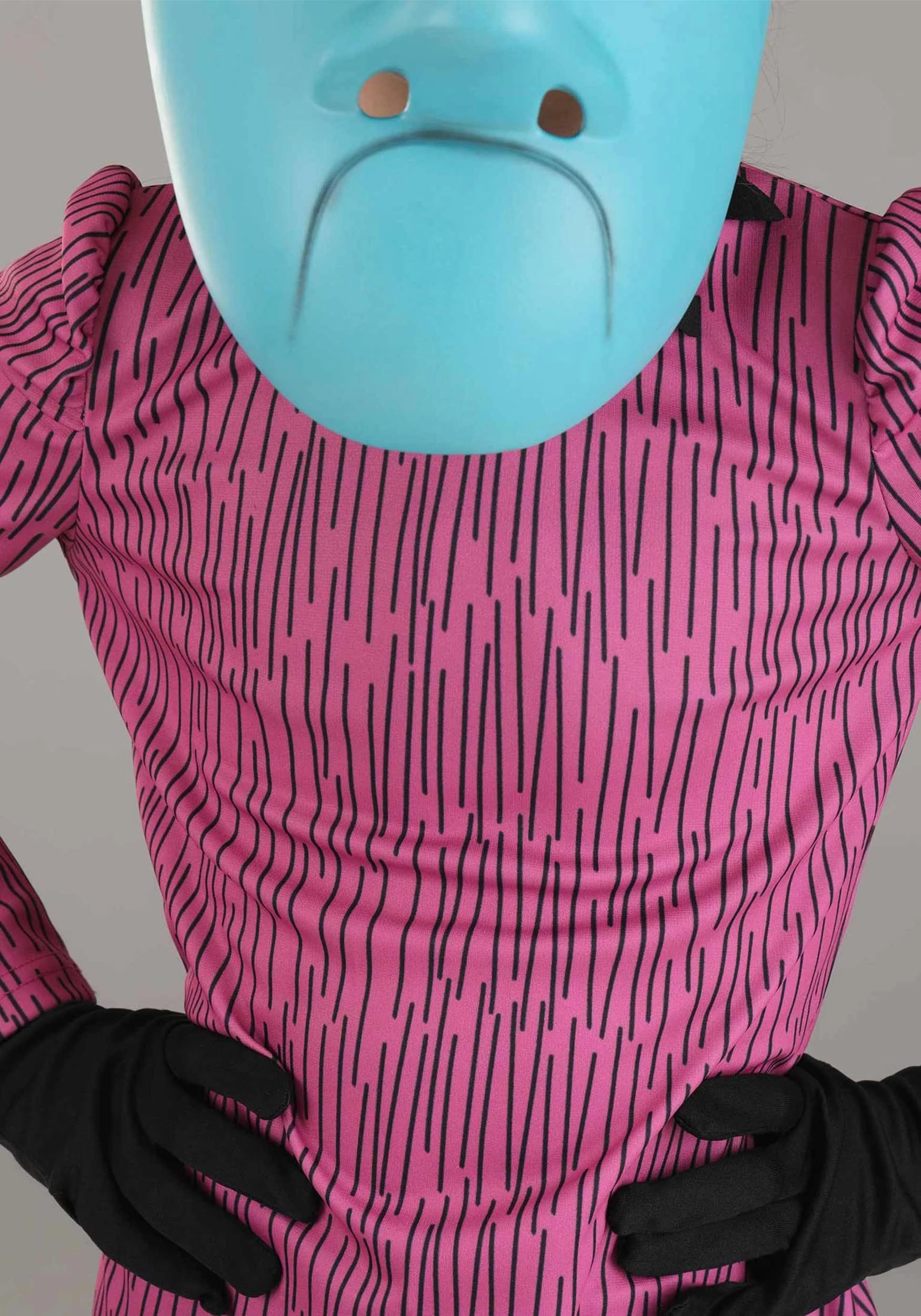 This one matches the dress and is supported by foam and wire to obtain that classic witch shape. Shock’s bright blue wiry hair emerges from the bottom of the hat, and the mask with her spooky scowl completes the ensemble. Your kiddo will be ready for plenty of tricks (and maybe some treats) in this witchy outfit!