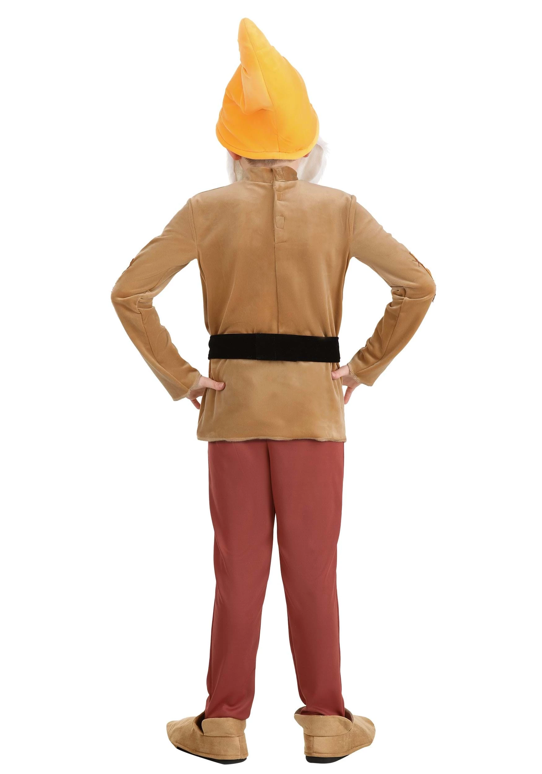 Sneezy’s outfit comes to life starting with a pair of elastic waistband pants in a deep reddish orange. The accompanying yellow top features two felt buttons on the front, faux suede elbow patches, and a black velvet belt that gives the tunic its classic shape. A plush hat and white faux fur beard ensure your kiddo looks just like the Disney dwarf. But if they’re feeling extra sneezy, the beard can be detached from hook-and-loop fasteners tucked inside the plush costume hat!
