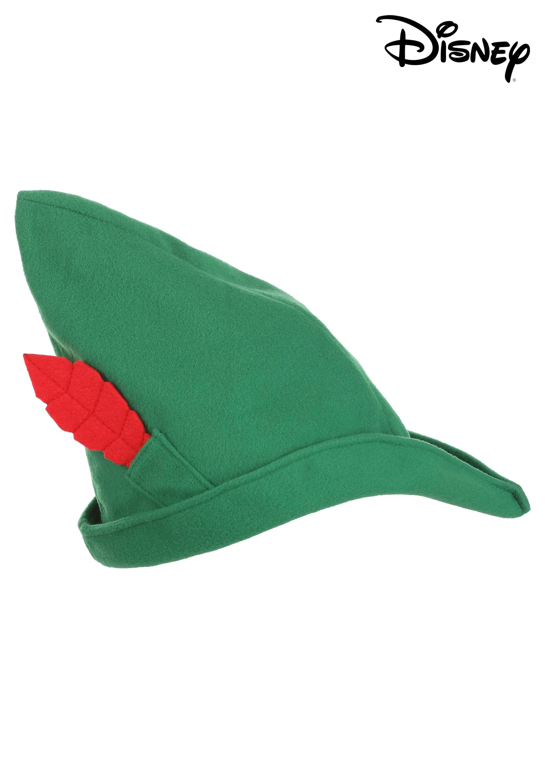 Fly past the third star on the right and straight on till morning when you wear this Men’s Disney Peter Pan Hat in Green! This take on the iconic hat worn by a legendary character is made of soft green fleece fabric and has an upturned brim that comes to a point at the front. A soft red felt “feather” is attached to the side.Â
