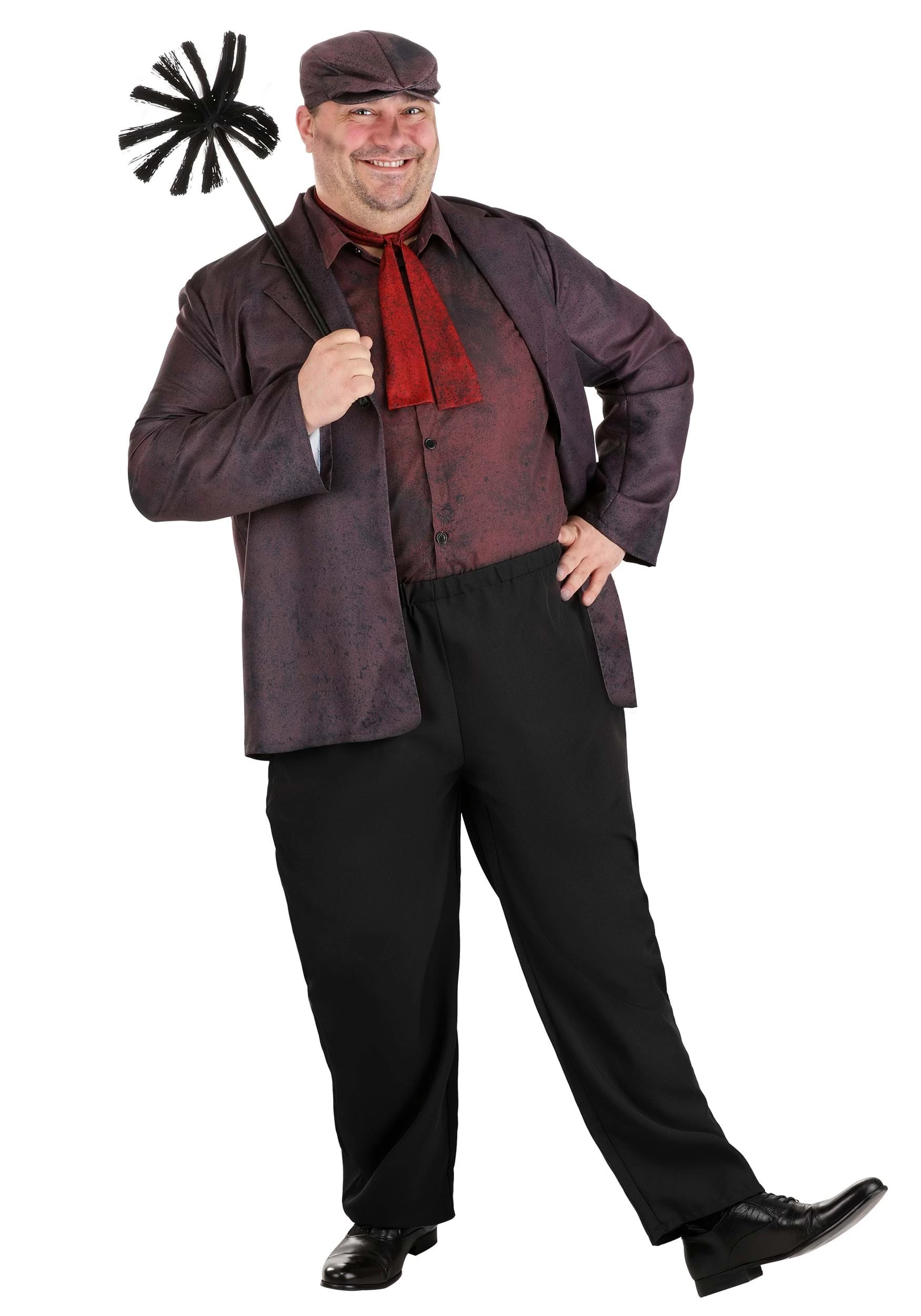 Get ready to clean some chimneys when you put on this Plus Size Bert Costume from Disney’s Mary Poppins! The outfit starts with a sleeveless shirt that buttons down the front and features a jaunty collar at the throat. The jacket is slightly darker and sits comfortably on top of the shirt, while a red necktie adds a pop of color. Last, a newsboy-style hat tops everything off. Each piece is printed with a pattern that makes it look like you’ve already encountered some soot. You’ll feel chim-chim-cheery in this fantastic costume, but we do have to advise extreme caution when dancing on rooftops!